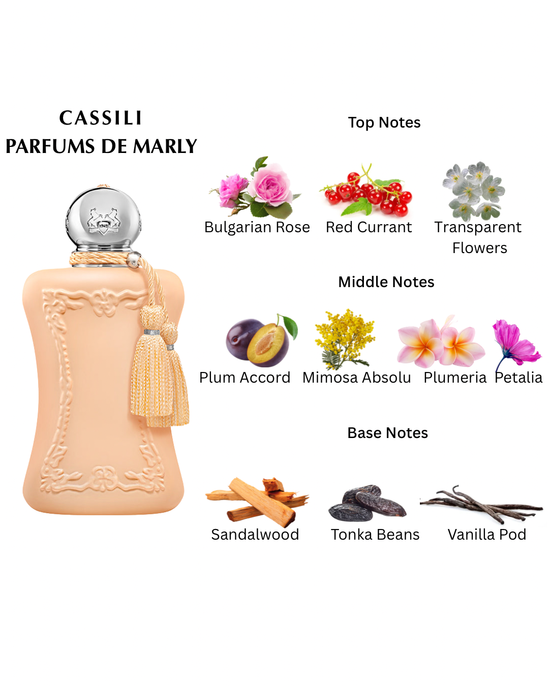 middle (heart) notes: plum accord, mimosa absolute, plumeria, petalia