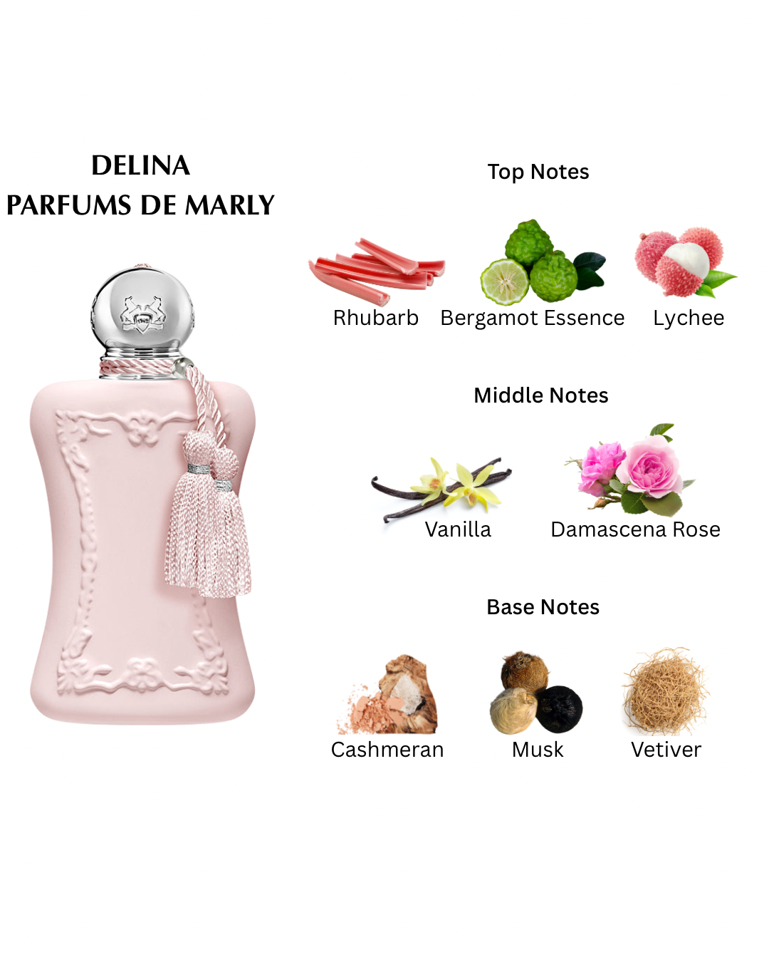 Delina, a universe of mystery and charm. Presented in a chypre pink and floral outfit, the fragrance intensifies on the skin as the day goes on. At the very beginning, the trail gives a vibrant glow with notes of lychee, black currant and pink berries. In the heart, the eau de parfum savors its floral accords that encapsulate the sensuality of the juice. The Turkish rose reveals its delicate facets: fresh, floral and green.