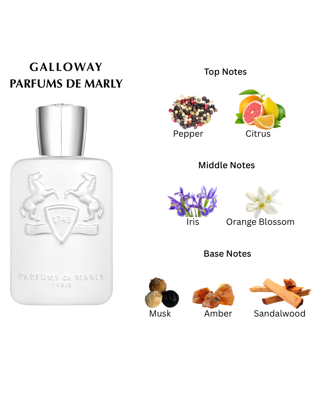 Galloway is the art of olfactory music. The shade and heat of pepper and citrus aromatics create surprise within this discerning perfume. The heart notes are an injection of sweet iris and heady orange blossom. At the base is a warm musk, honey-like amber and deep-wooded sandalwood, highly textured to curate a distinguished eau de parfum.