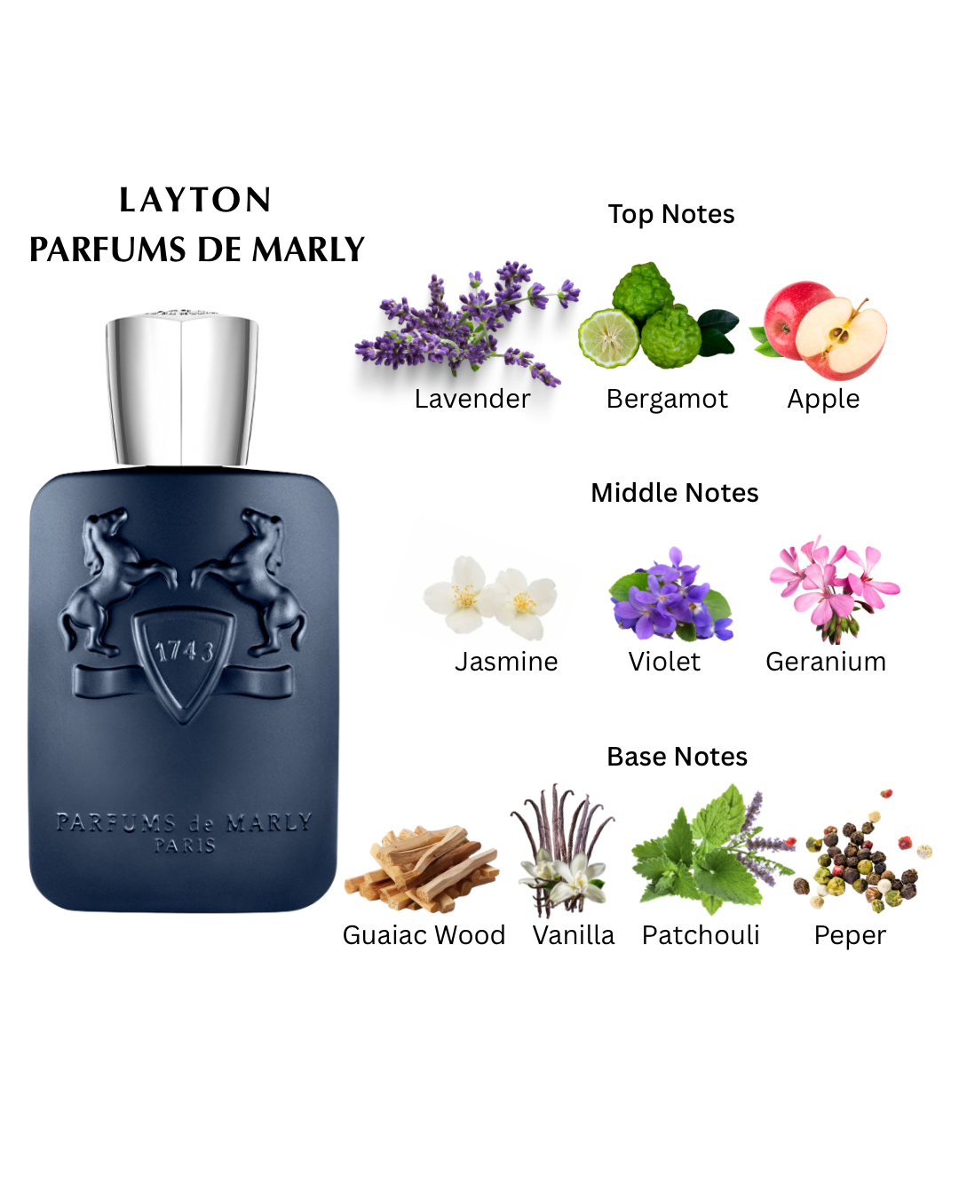 A blend of freshness and sensuality, Layton is an aromatic woody fern dedicated to the new dandies: free spirits who live intensely, passionate about luxury and pleasure. With this creation, the perfumer has imagined the cascades of aromatic fragrances gushing from the royal fountains of the Chateau of Marly.