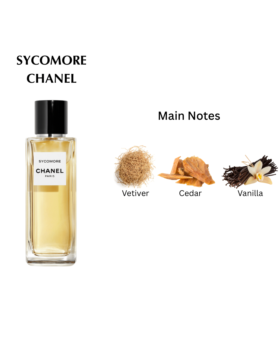 Created in 1930 and inspired by the noble spirit of autumn and the childhood of Gabrielle Chanel, the intensely woody scent of SYCOMORE evokes the great outdoors. This pure, majestic fragrance is composed around the smoky scent of vetiver, with notes of cedar and vanilla.